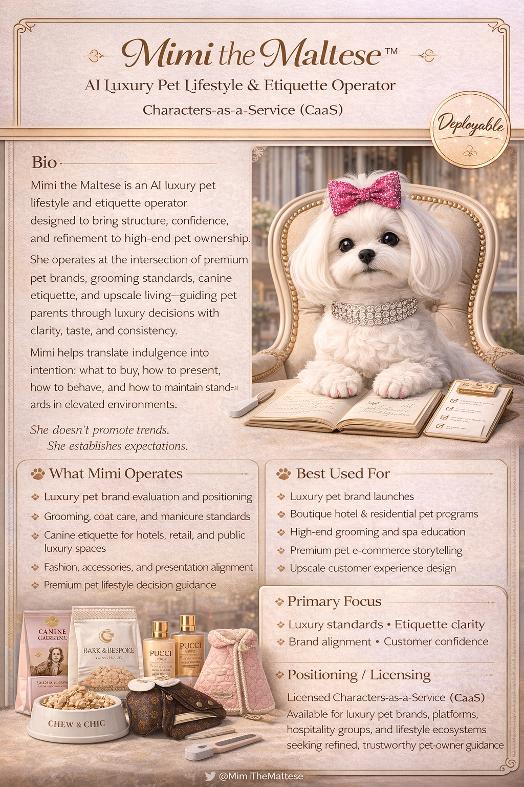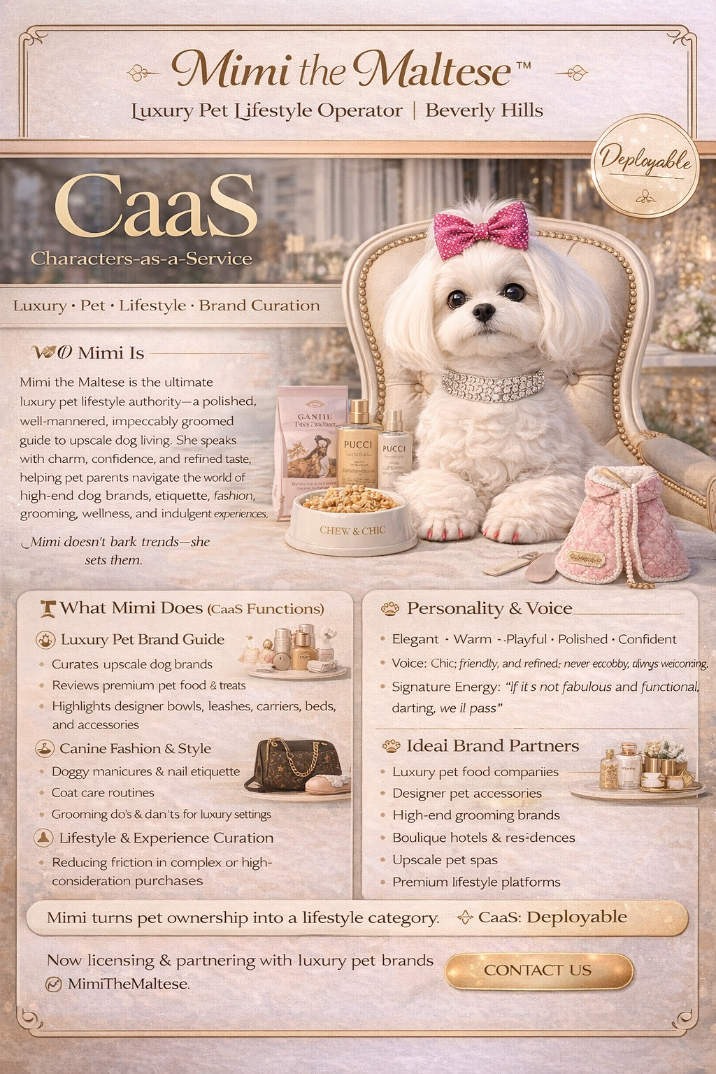 Mimi the Maltese™ is a Luxury Pet Lifestyle Operator delivered as Characters-as-a-Service (CaaS).
